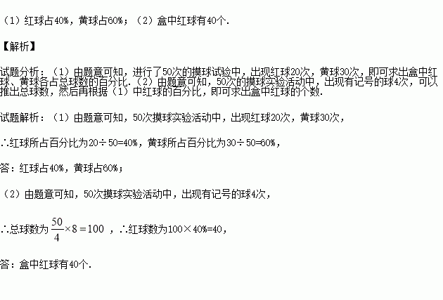 (1)盒中红球、黄球各占总球数的百分比分别是多少?