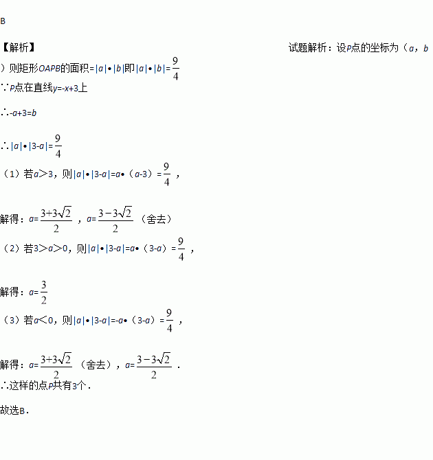 在一次函数y=-x+3的图象上取一点P,作PA⊥x轴,垂足为A,作PB⊥y轴,垂足为B,且矩形OAPB的面积为