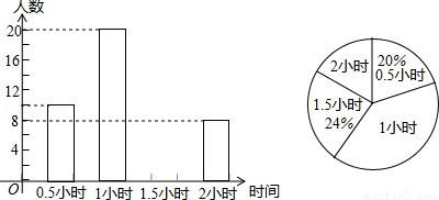 为增强学生的身体素质,教育行政部门规定学生每天参加户外活动的平均时间不少于1小时.为了解学生参加户外活动的情况,对部分学生参加户外活动的时间进行抽样调查,并将调查结果绘制作成如下两幅不完整的统计图,请你根据图中提供的信息解答下列问题: