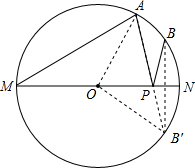 解答:解:如图,作点B关于MN的对称点B′,连接OA、OB′、AB′,