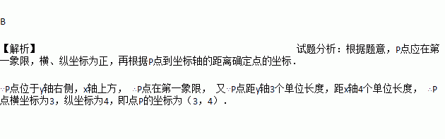 已知点P位于y轴右侧,距y轴3个单位长度,位于x轴上方,距离x轴4个单位长度,则点P坐标是( )
