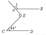 如图,直线AB∥CD,∠C=44°,∠E为直角,则∠1等于( )