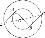如图,在两个同心圆⊙O中,AB是小圆的直径,BC与小圆相切于点B,并交大圆于点C,且BC=