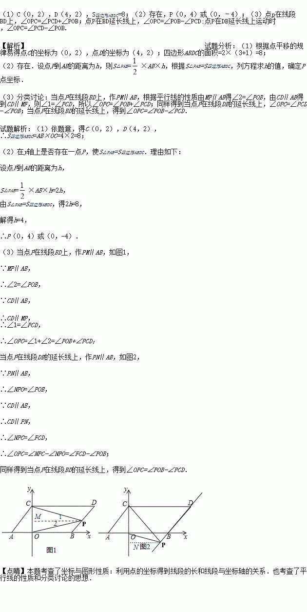 (3)点P是直线BD上一个动点,连接PC、PO ,当点P在直线BD上运动时,请直接写出∠OPC与∠PCD、∠POB的数量关系