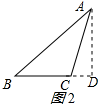 ②当△ABC为钝角三角形时,如图2所示:![]()