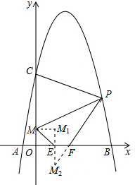 分析 根据抛物线的解析式易求点C的坐标,再根据四边形PMEF的四条边中,PM、EF长度固定,因此只要ME+PF最小,则PMEF的周长将取得最小值.如答图3所示,将点M向右平移1个单位长度(EF的长度),得M1(1,1);作点M1关于x轴的对称点M2,则M2(1,-1);连接PM2,与x轴交于F点,此时ME+PF=PM2最小.