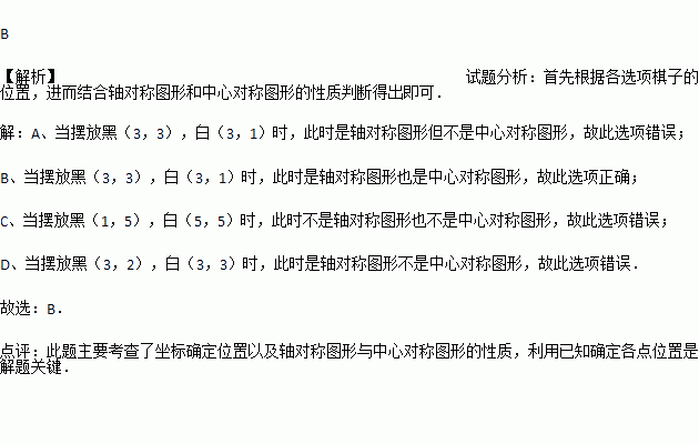 (2013•宁德)如图,是用围棋子摆出的图案(用棋子的位置用用有序数对表示,如A点在(5,1)),如果再摆一黑一白两枚棋子,使9枚棋子组成的图案既是轴对称图形又是中心对称图形,则下列摆放正确的是( )
