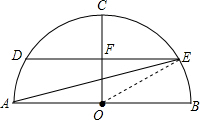 如图,AB是半圆O的直径,过圆心O作OC⊥AB,交半圆于点C,F是CO的中点,过点F作弦DE∥AB,求∠BAE的度数.