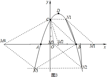 (3)设点M的坐标为(t,0),若能构成平行四边形时点N的坐标有三种可能,分别讨论即可求得M的坐标.