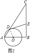 解答 解:(1)如图1,连接OD,![]()