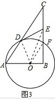 (3)由BC中点为F,如图3,连接OF、OD、OE,![]()