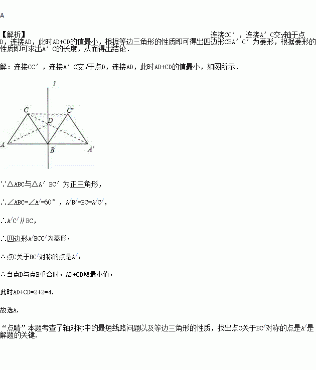 对称,D为线段BC′上一动点,则AD + CD的最小值是( )