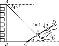 如图,一楼房AB后有一假山,其坡度为i=1∶