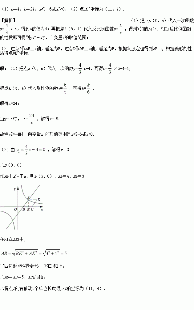 (2)以AB为边作菱形ABCD,使点C在点B右侧的x轴上,求点D的坐标.