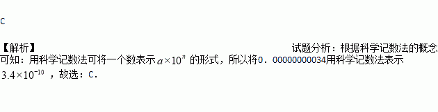 石墨烯是现在世界上最薄的纳米材料,其理论厚度仅是0.00000000034m,这个数用科学记数法表示正确的是( )