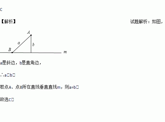 点A在直线m外,点B在直线m上,A、B两点的距离记作a,点A到直线m的距离记作b,则a与b的大小关系是( )