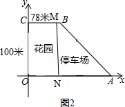 ∴可以设计一个长方形的花园CMNO,和一个梯形的停车场MBAN,