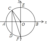 解答 解:如图所示,∵OF=OC,∴∠OFC=∠OCF.∵CD⊥AB,OE⊥AB,∴CD∥OE,∴∠DCF=∠OFC,∴∠DCF=∠OCF,∴OF是角OCD的平分线,∵⊙O的半径为5,∴F(0,-5).故答案为:(0,-5).
