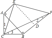 分析 作ED⊥BF于D,由已知条件和等腰直角三角形的性质得出∠CAE=∠FBC,证出∠1=∠2,得出△ACE∽△BFC,由相似三角形的对应边成比例得出AC•BC=AE•BF=AC2,求出AC2=2$\sqrt{5}$,得出DE2=4$\sqrt{5}$,由勾股定理求出EF即可.