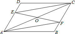 分析:由平行四边形的性质可知:AE∥CF,根据条件AO=OC,可证明△AOE≌△COF,由全等三角形的性质可知OE=OF,所以四边形AFCE是平行四边形,再由平行四边形的性质可知:EC∥AF.