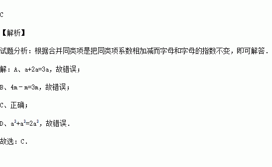 A.a+b=ab B.2a﹣a=2 C.3ab+ba=4ab D.ab﹣3ab=2ab
