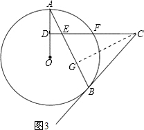 (3)过点C作CG⊥BE于点G,由CE=CB,可求出EG=$\frac{1}{2}$BE=5,又Rt△ADE∽Rt△CGE和勾股定理求出DE=2,由Rt△ADE∽Rt△CGE求出AD的长,进而求出⊙O的半径.