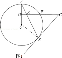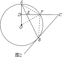 (2)连接OF,AF,BF,首先证明△OAF是等边三角形,再利用圆周角定理:同弧所对的圆周角是所对圆心角的一半即可求出∠ABF的度数;