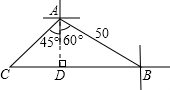 某中学团委组织团员到位于A市南偏东60°方向50千米的B基地慰问驻军,然后乘车前往位于B基地正西方向的C哨所看望值班战士,C哨所位于A市的南偏西45°方向,则C到A的距离是多少?