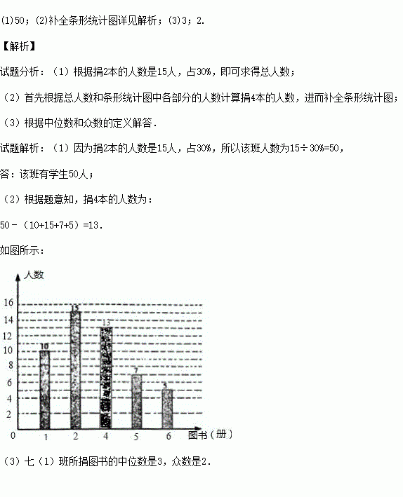 (3)七(1)班全体同学所卷图书的中位数和众数分别是多少?