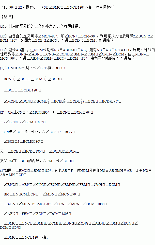 (2)若CM在∠BCD的内部,且CM⊥CN于C,求证:CM平分∠BCD;