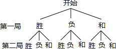 (2)如果两人约定:只要谁率先胜两局,就成了游戏的赢家.用树形图或列表法求只进行两局游戏便能确定赢家的概率.