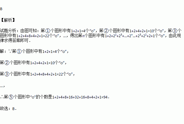 如图,第①个图形中有4个“○”,第②个图形中有10个“○”,第③个图形中有22个“○”,…,那么第⑤个图形中“○”的个数是( )