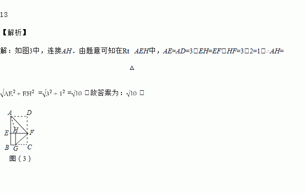 如图(1),矩形纸片ABCD中,AB=19,BC=12,先按图(2)操作,将矩形纸片ABCD沿过点A的直线折叠,使点D落在边AB上的点E处,折痕为AF;再按图(3)操作,沿过点F的直线折叠,使点C落在EF上的点H处,折痕为FG,则A、H两点间的距离为_____.
