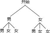 ∴P(一男一女)=$\frac{3}{6}$=$\frac{1}{2}$.