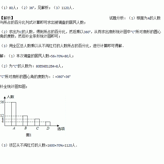 (3)如果该社区共有居民1600人,估计有多少人从不闯红灯?