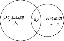 为了响应学校体育运动会的精神,某中学七(1)班班委会对班级同学运动会情况进行了调查,调查发现:班级共有20名同学会打篮球或乒乓球,已知会打乒乓球的人数比会打篮球的人数多2人,两类球都会打的有10人.