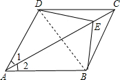 分析:(1)由四边形ABCD是菱形,可得AD=AB,∠CAD=∠CAB,即可利用SAS判定:△ADE≌△ABE;