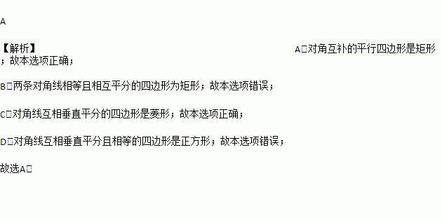 A. 对角互补的平行四边形是矩形 B. 对角线相等的四边形是矩形