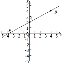 解:如图,过A(0,2)、B(4,4)作直线AB交x轴与P,