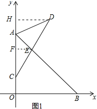 分析 (1)先求得A、B的坐标,作DH⊥y轴于H,作EF⊥y轴于F,根据三角形的面积求得DH=2,然后根据三角形中位线定理求得EF=1,由A、B的坐标,根据待定系数法求得直线AB的解析式,进而求得E的纵坐标,得出CF=2,即可求得FH=FC=2,得出D的纵坐标;
