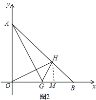(2)作HM⊥OB于M,由∠BGH=∠AGO,根据直角三角函数得出$\frac{OA}{OG}$=$\frac{HM}{GM}$=2,设GM=m,则HM=2m,