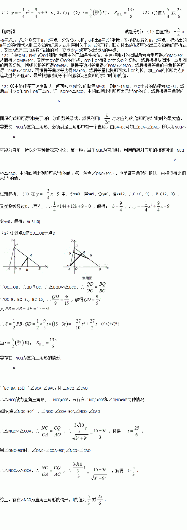 ¢ÚÊÇ·ñ´æÔÚ¡÷NCQΪֱ½ÇÈý½ÇÐεÄÇéÐΣ¿Èô´æÔÚ£¬Çó³öÏàÓ¦µÄtÖµ£»Èô²»´æÔÚ£¬Çë˵Ã÷ÀíÓÉ£®