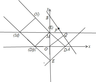 ②当直线OQ向上平移时,平移到与y轴的交点为(0,4),与x轴交点为(-4,0),DENM为正方形,