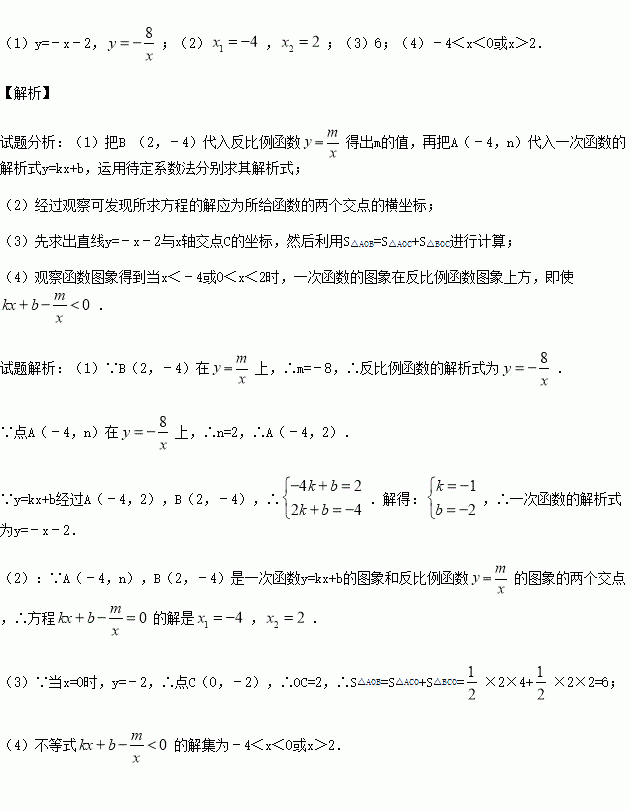 如图,已知A(﹣4,n),B(2,﹣4)是一次函数