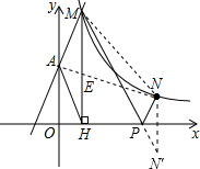 (2)先由点N(a,1)是反比例函y=$\frac{4}{x}$(x>0)图象上的点,求出a=4,即点N(4,1).再作N关于x轴的对称点N′,连结MN′,交x轴于点P,此时PM+PN最小.根据关于x轴对称的两点的坐标特征得出点N′(4,-1),利用待定系数法求出直线MN′的解析式,再令y=0,求出x的值,进而得到点P的坐标;