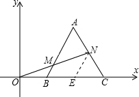 分析:如图,过点N作NE∥AB交BC于点E.易证BM是△ONE的中位线,EN是△ABC的中位线.所以利用三角形中位线定理和等边三角形的性质得到:BM=