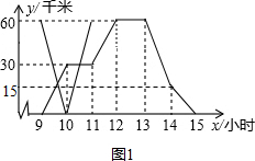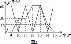 ¡àÓÐ$\left\{\begin{array}{l}{0=9{k}_{1}+{b}_{1}}\\{30=10{k}_{1}+{b}_{1}}\end{array}\right.$ºÍ$\left\{\begin{array}{l}{60=9{k}_{2}+{b}_{2}}\\{0=10{k}_{2}+{b}_{2}}\end{array}\right.$£¬