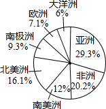 如图反映的是地球上七大洲的面积占陆地总面积的百分比,小明根据如图得出了