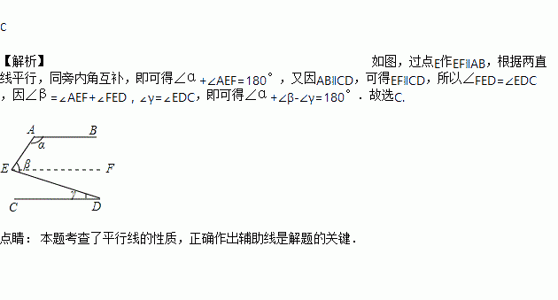 如图,如果AB ∥CD ,则∠α,∠β,∠γ之间的关系是 ( )