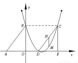 (3)若M点是CD所在直线下方该抛物线上的一个动点,过点M作MN平行于y轴交CD于点N.设点M的横坐标为t,MN的长度为l.求l与t之间的函数关系式,并求l取最大值时,点M的坐标.
